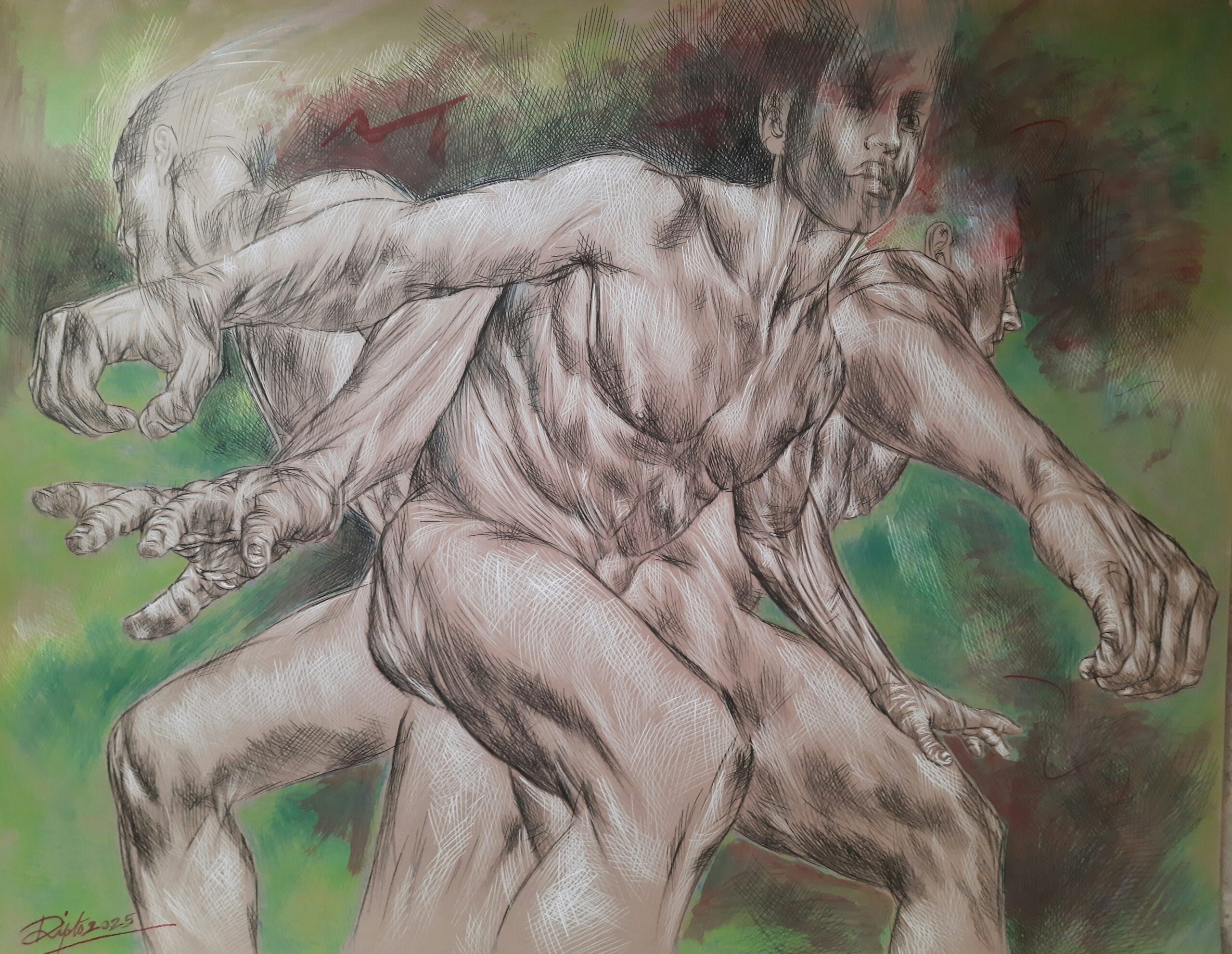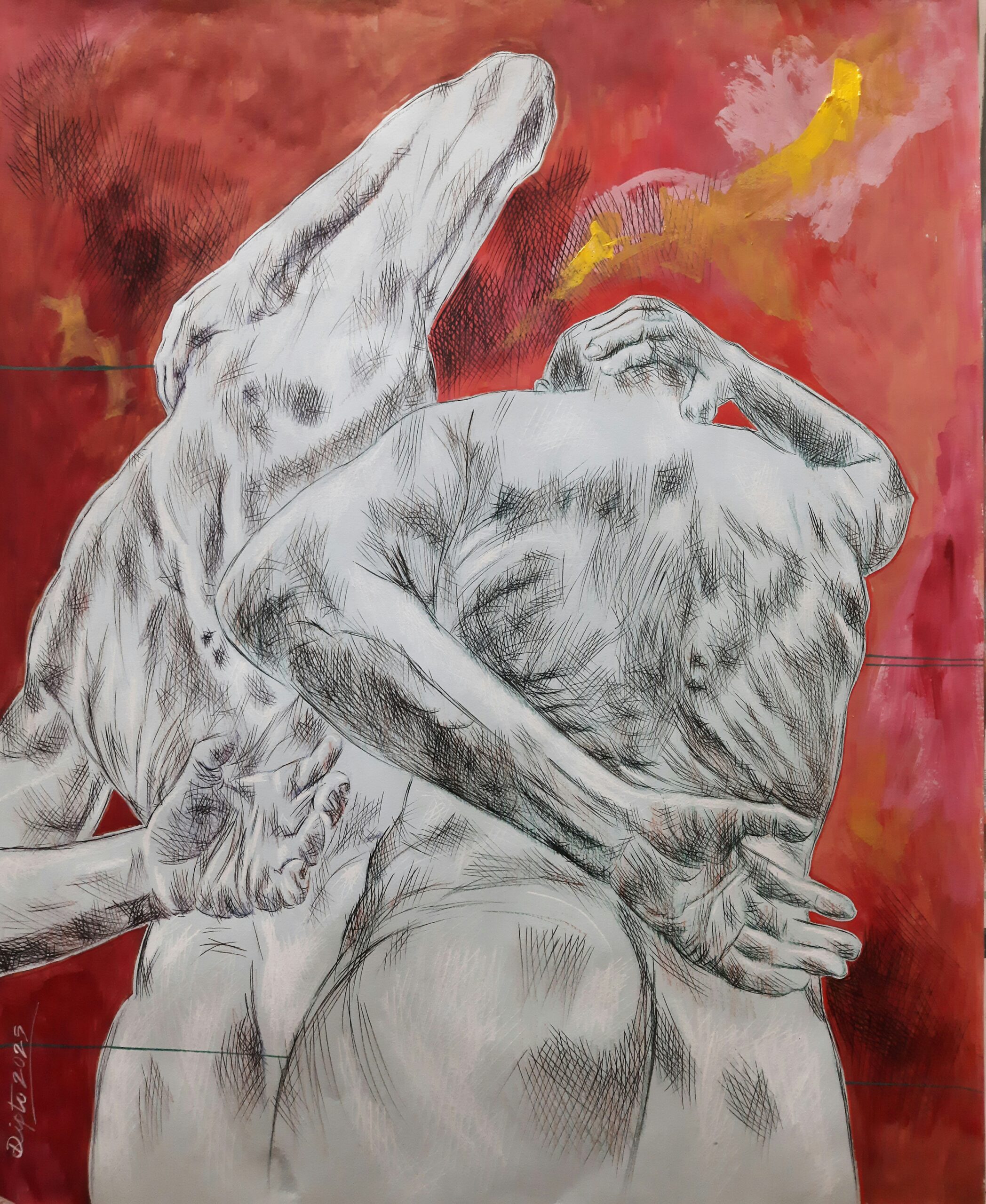 Dipto Narayan Chattopadhyay, a born artist belongs to the land of creative expression and artistic excellence, West Bengal. Born on June 9th 1973 he started his artistic journey when he had barely started talking by embellishing the walls of his house with drawings and paintings using his father’s boot polish and mother’s lipsticks. Holding a doctorate [Ph.D] in painting and history of art Dipto has proved his artistic merit all over the globe. His brushstrokes convey a different dialect of vivacious imaginations. He is perfectly at home in realistic works where he exhibits exceptional skills of a perfectionist verging on photo-realism. When he turns to fantasy or abstract themes he lets his imagination run wild and pushes surrealism to a new level. Dipto’s mixed media creations are exclusive in the sense that he adds the third dimension to two-dimension by creating a relief on the surface, like brickwork.